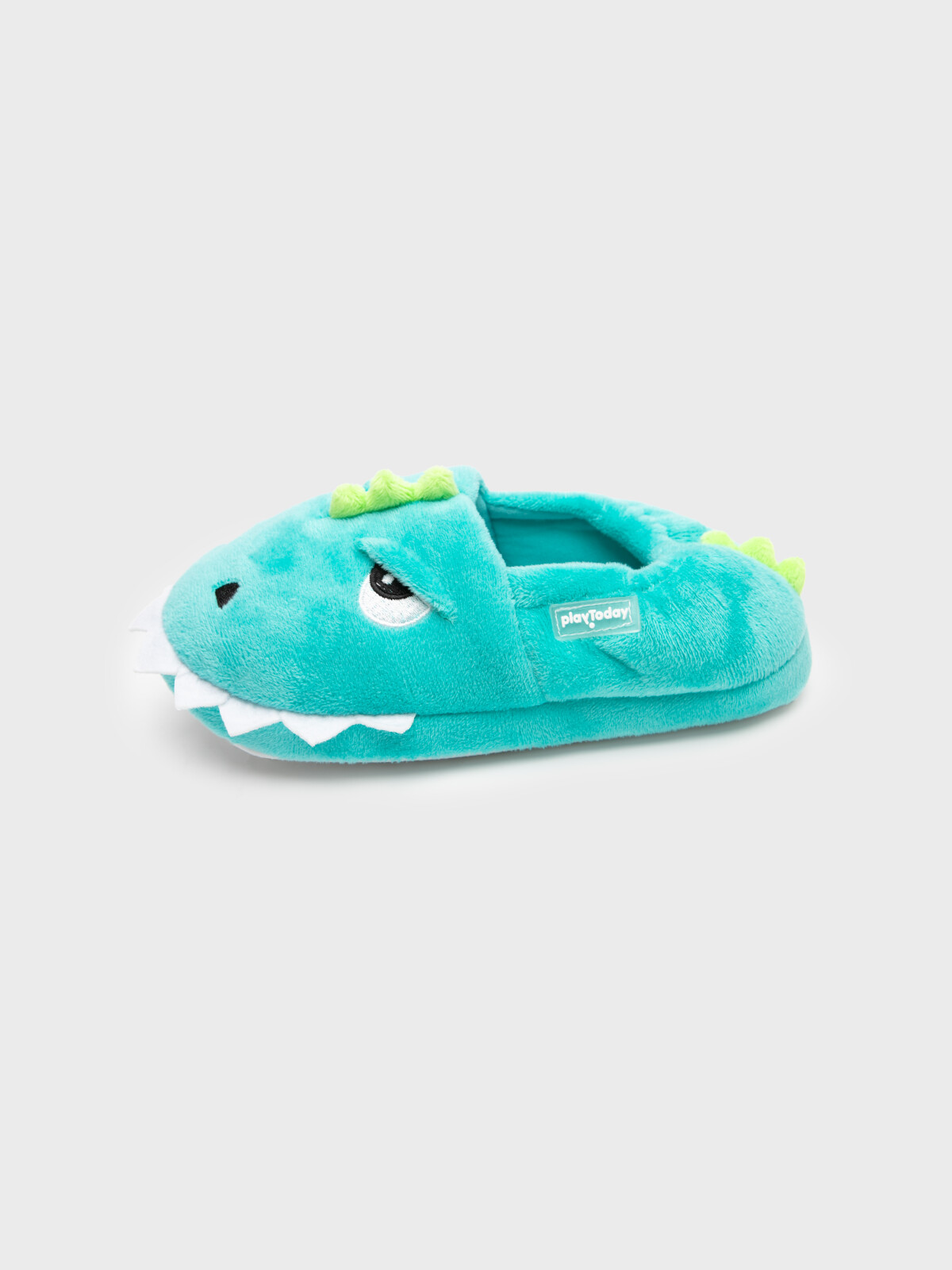 Тапочки детские для мальчика. Стильная и удобная домашняя обувь с любимым героем мальчишек - динозавром. Верх тапочек выполнен из износостойкого текстиля с мягкой, приятной на ощупь поверхностью. Подкладка и стелька из трикотажа с высоким содержанием хлопка 95%.Противоскользящая подошва. Конструкция с закрытой пяткой хорошо держится на ноге.