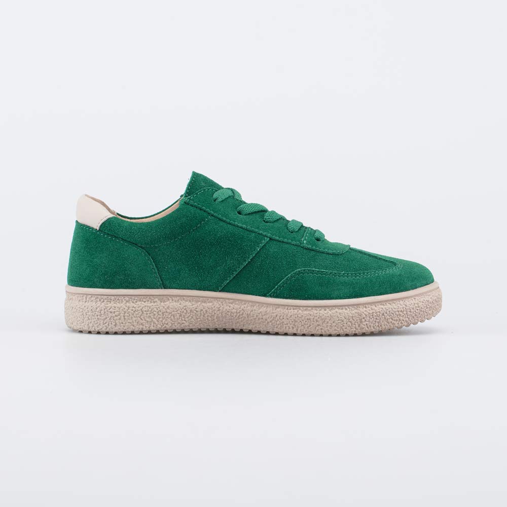 Велюровые полуботинки выполнены в сочетании трендовых цветов: зеленого и бежевого. Подходят для мальчика-подростка.