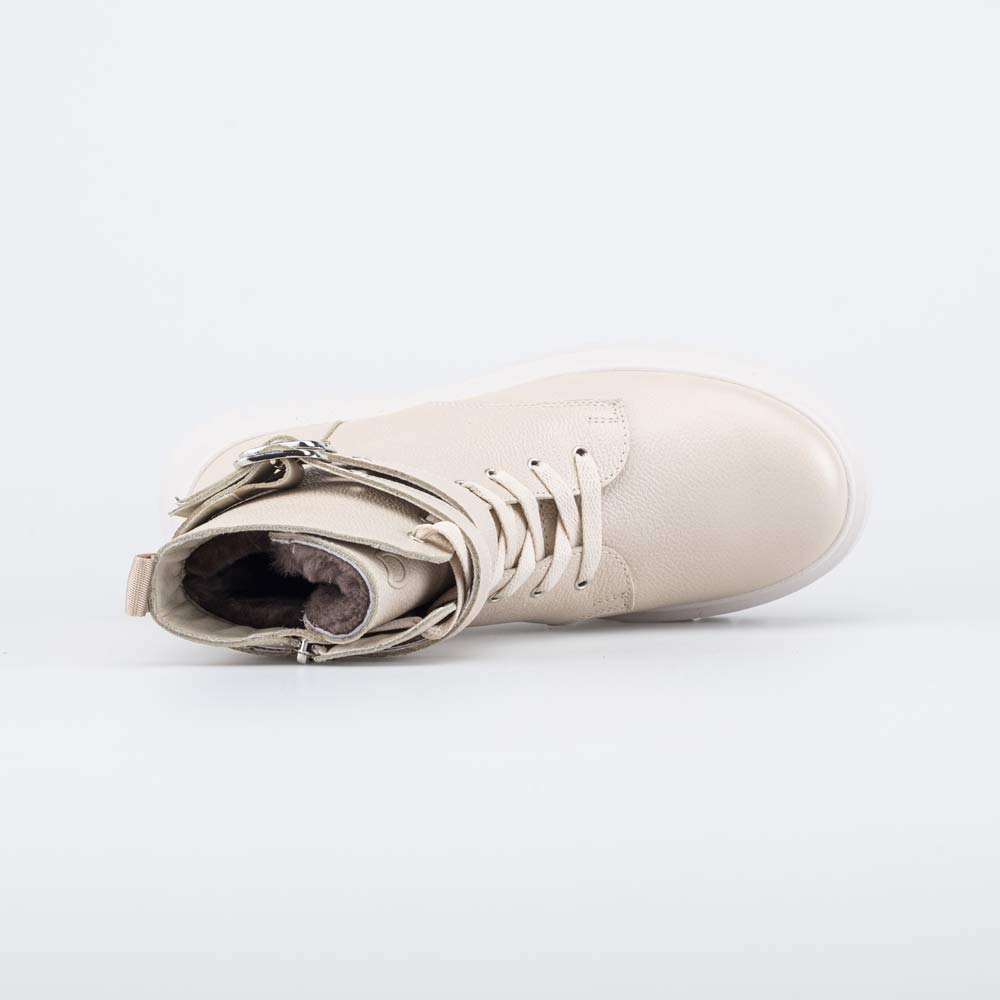 Высокие зимние ботинки бежевого цвета на овчине походят для девочки-школьницы. Верх выполнен из дышащей натуральной гладкой кожи. Внутри - подкладка из 100% овечьего меха, которая отлично согревает. Войлочная стелька дополнена петелькой, чтобы было удобно доставать для просушки. Шнурки позволяют отрегулировать обувь по ноге, а молния – быстро обуваться и разуваться. Подошва из с высоким протектором изготовлена из ТЭП (термоэластопласта), поэтому обеспечивает дополнительную теплоизоляцию и обладает хорошей устойчивостью на зимних дорожках. Ботинки декорированы ремешками с пряжками, а лаконичный дизайн позволяет сочетать их с разными образами. Модель анатомически-правильная: пяточная часть приподнята над носочной, круглый носок не стесняет движений пальцев, в меру жесткий задник фиксирует пятку при ходьбе, а войлочная стелька приформовывается к стопе, принимая индивидуальную форму. Все это положительно влияет на развитие опорно-двигательного аппарата. Сделано в России.
