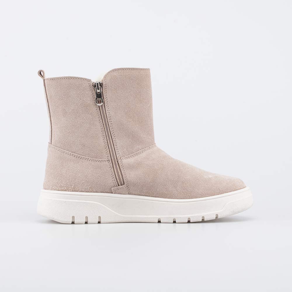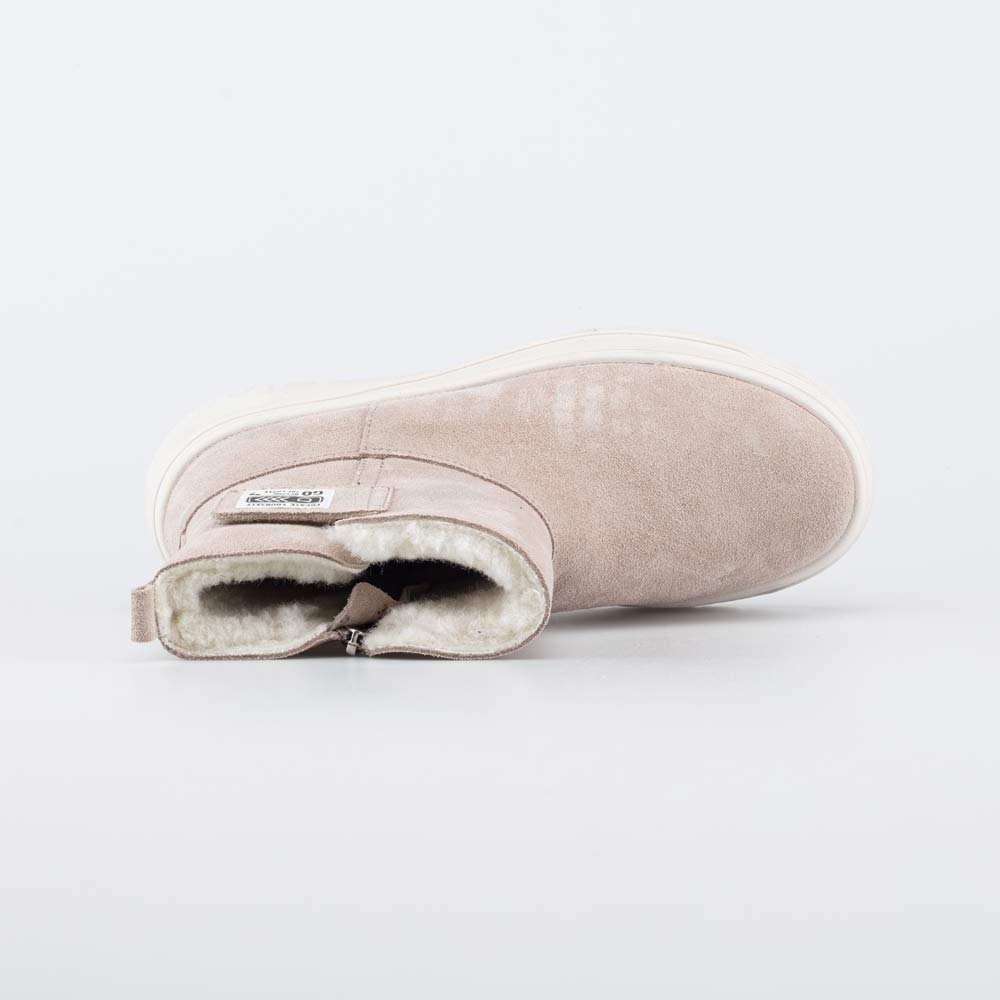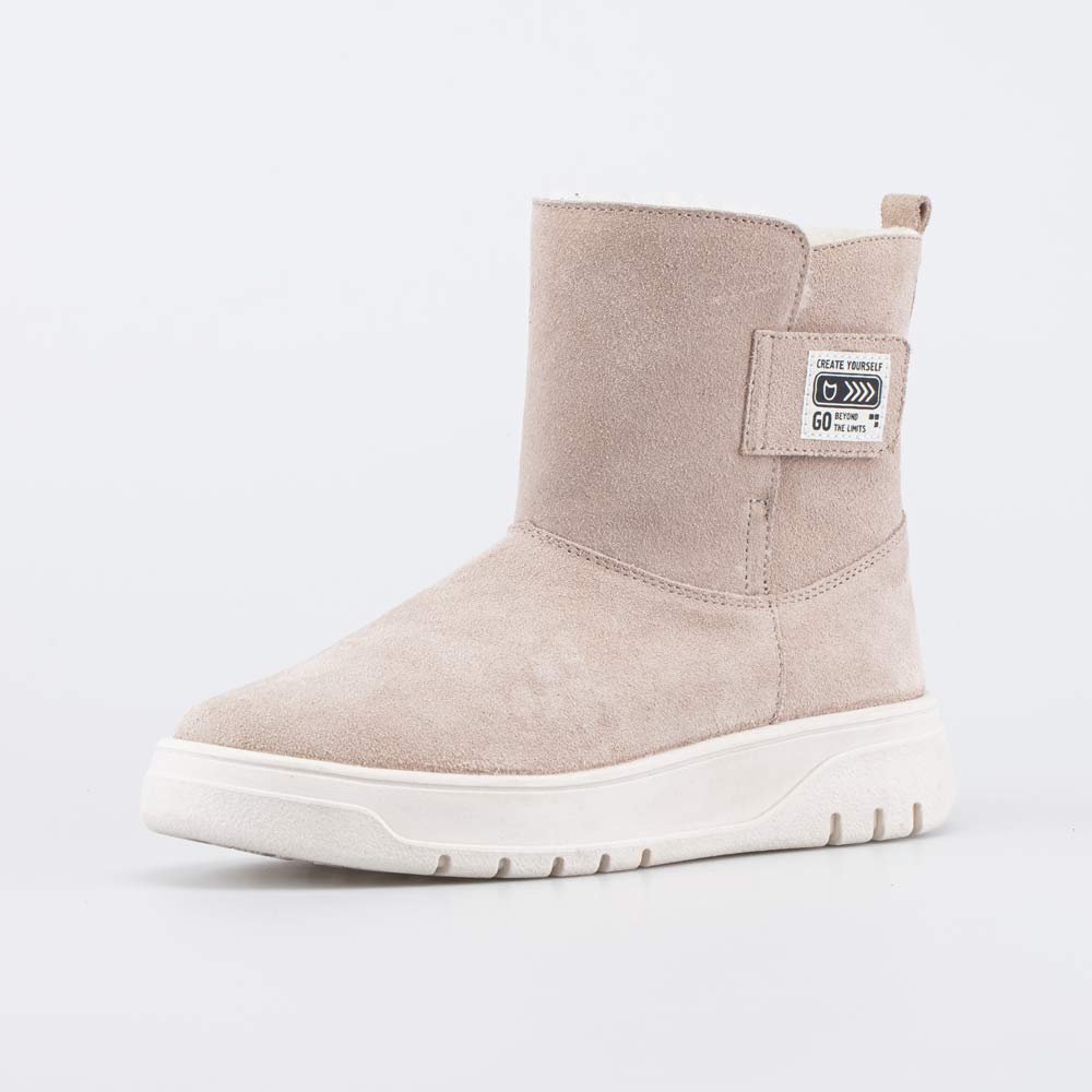 Удобные зимние сапожки на молнии выполнены в универсальном бежевом цвете. Верх коротких сапожек для девочки изготовлен из натуральной кожи-велюра и украшен ненавязчивой нашивкой. Внутри кожаных сапожек имеется подкладка – шерстяной мех из натуральной овечьей шерсти. Он сохраняет тепло и дарит ножкам ощущение уюта. Войлочная стелька снабжена шелковой петелькой, чтобы было удобно доставать для проветривания. Меховые сапожки на молнии удобно обувать, а ремешок с липучкой позволяет подогнать обувь по ширине ноги. Подошва в модном кедовом стиле выполнена из ТЭП (термоэластопласта). Материал обеспечивает дополнительную теплоизоляцию и обладает хорошей устойчивостью на зимних дорожках. Сапожки разработаны с учетом особенностей подростковой стопы и обеспечивают необходимую поддержку. Сделано в России, Егорьевск. *Для поддержания внешнего вида обуви рекомендуем время от времени обрабатывать ее водоотталкивающими спреями.