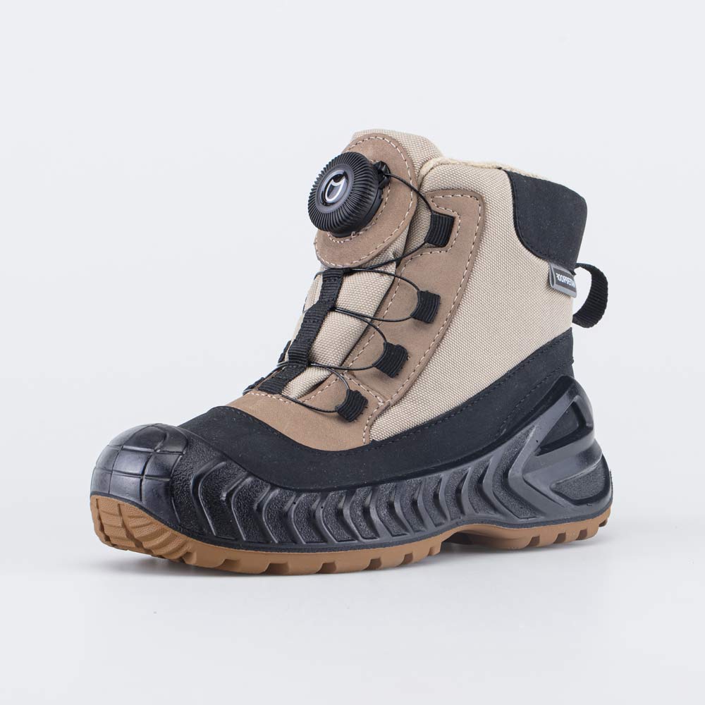 Верх этих зимних ботинок изготовлен из ветронепродуваемого текстиля. По всему периметру имеется защитная накладка из натуральной кожи.