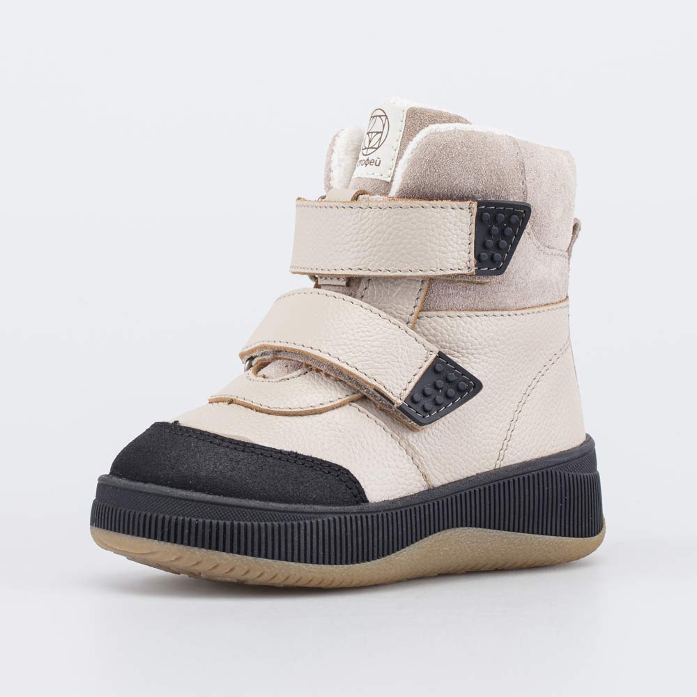 Зимние ботинки на липучках подходят для девочки, которая только начинает ходить. Верх выполнен в сочетании натуральной гладкой кожи и кожи-велюра в районе манжета.