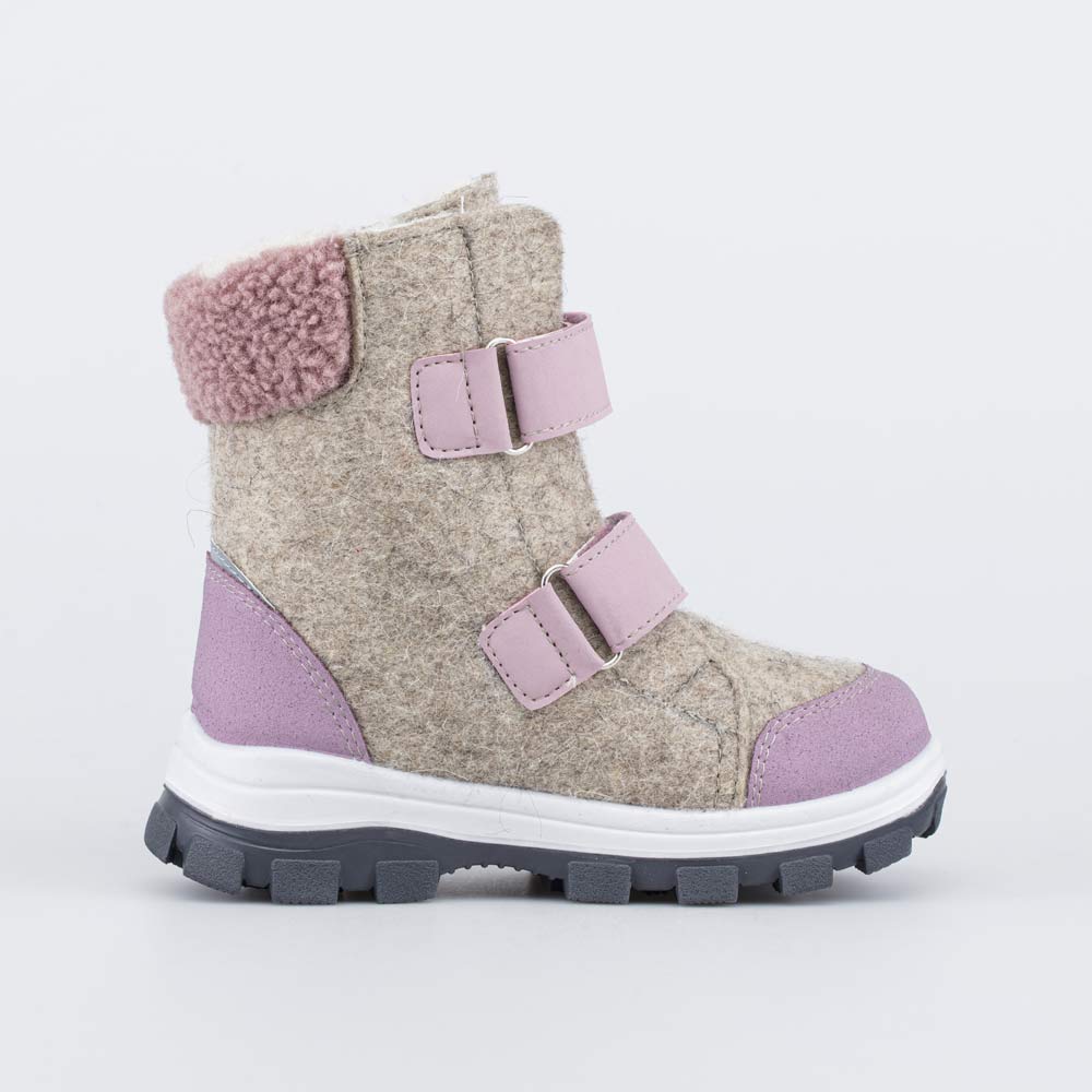 Валенки выполнены из бежевого войлока и подходят для девочки.
