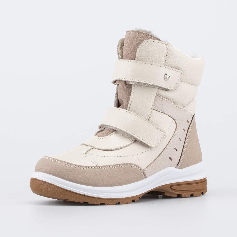 Верх этих детских ботинок изготовлен из гипоаллергенной и дышащей натуральной кожи. Носочная и пяточная части защищены от повреждений и реагентов антивандальными накладками с ПУ-напылением.
