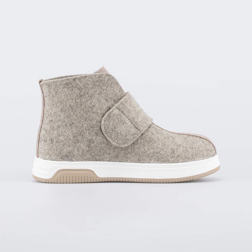 Верх этих бежевых валенок изготовлен из плотного и дышащего натурального войлока. Он дарит стопам целебное сухое тепло и оказывает массажный эффект, улучшая кровообращение.