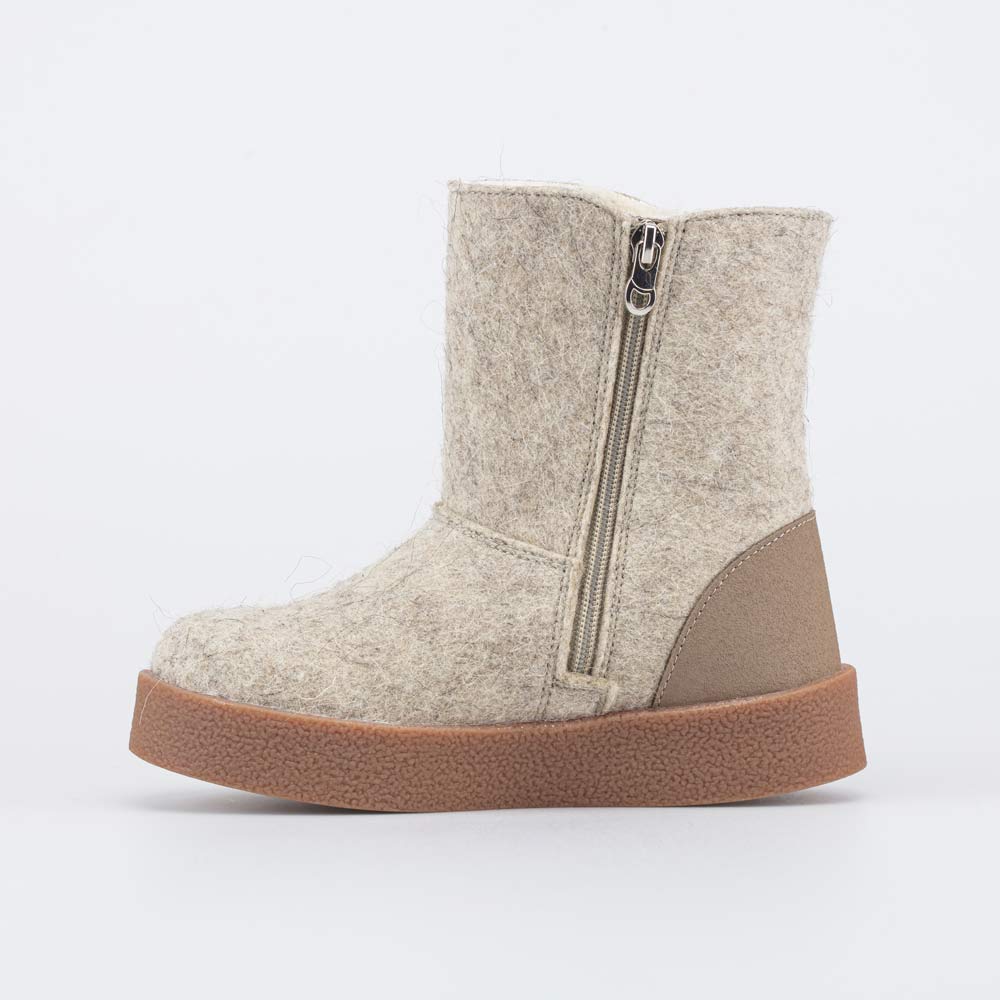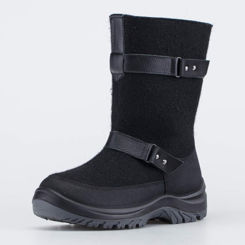 Войлок плотный, с водоотталкивающими свойствами. Он надежно сохраняет тепло, дышит и создаёт приятный микроклимат вокруг стопы. Пяточная часть защищена кожаной накладкой с ПУ-покрытием, предохраняющей от влаги и реагентов.