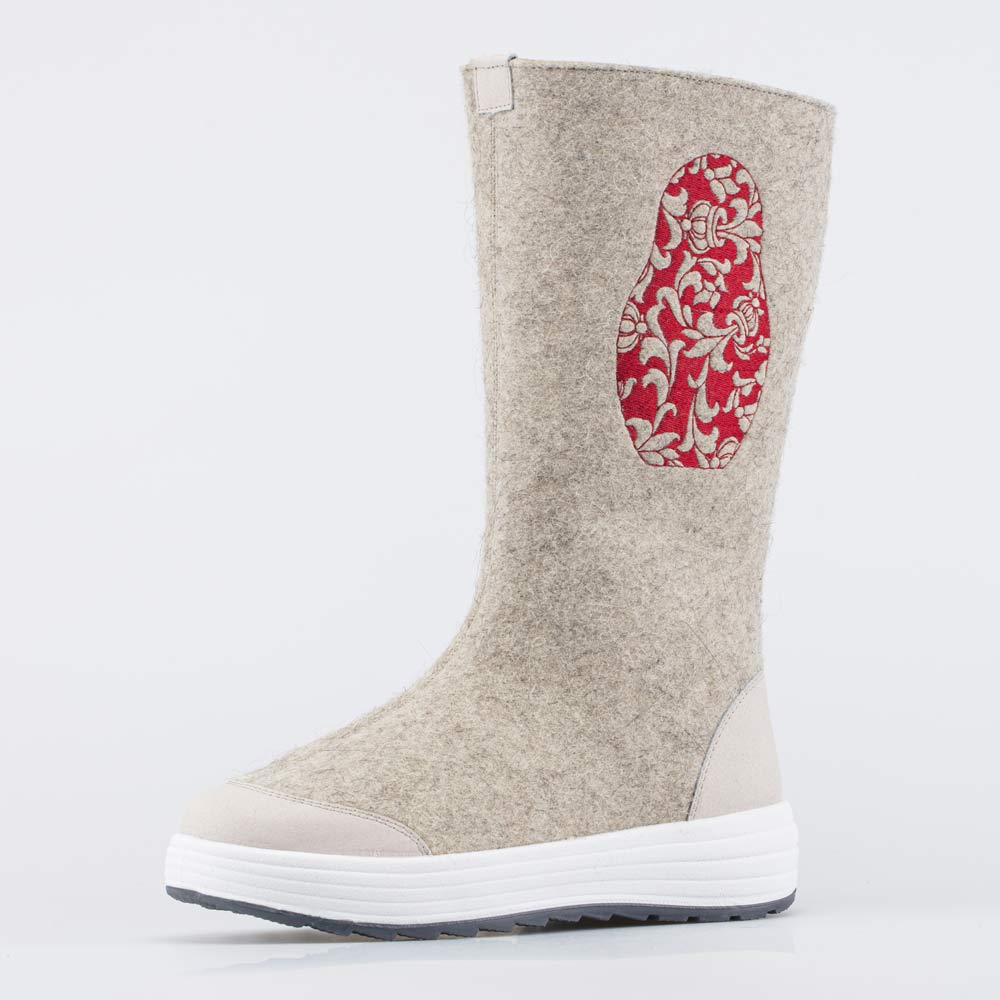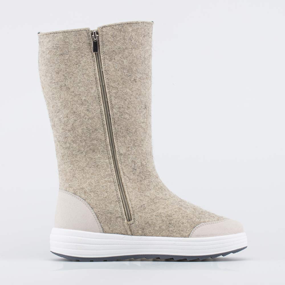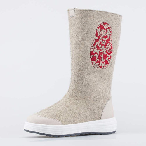 Плотный войлок обладает водоотталкивающими свойствами, дышит и создаёт приятный микроклимат вокруг стопы. Носок и пятку от влаги и реагентов защищают кожаные накладки с ПУ-покрытием.