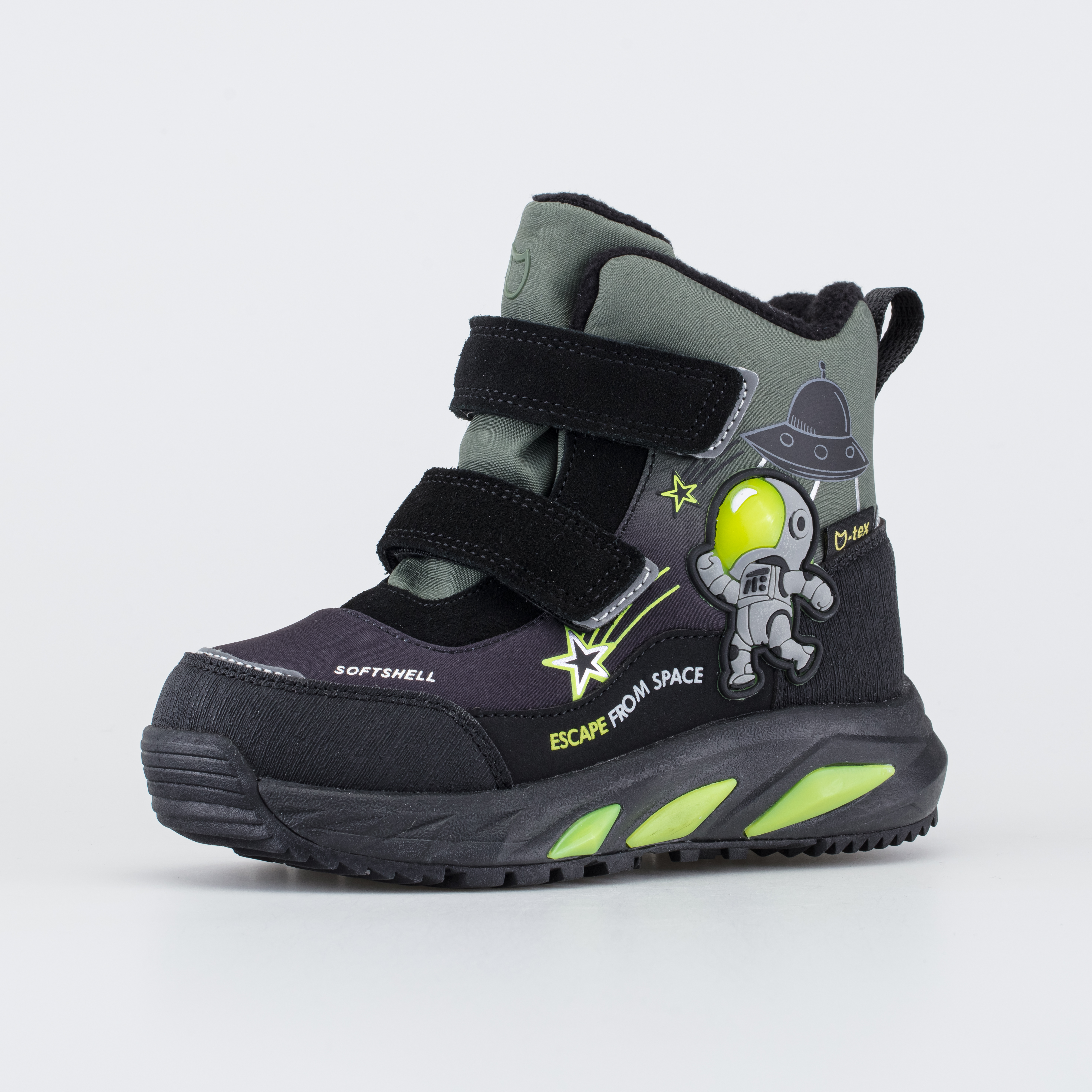 Верх этих детских ботинок изготовлен из SoftShell – уникального материала с высокими ветрозащитными свойствами. Носок и пятка оснащены антивандальными накладками.