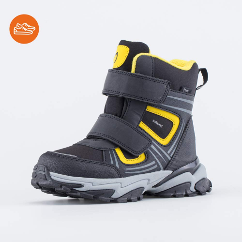 Черные мембранные ботинки для мальчика выполнены из высокотехнологичных материалов с применением технологии SoftShell.
