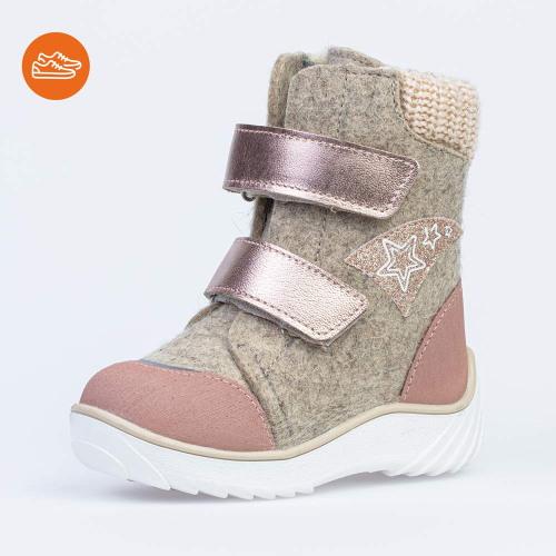 Теплые валенки на липучках подходят для девочки и имеют продуманную конструкцию.