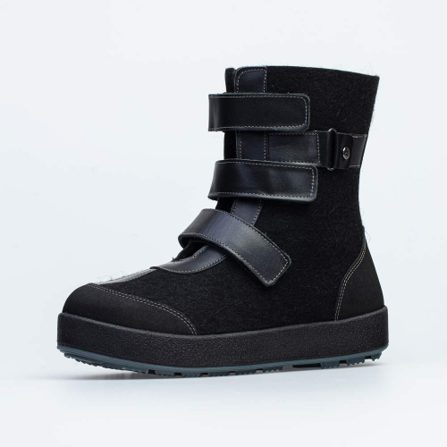 Плотный войлок обладает водоотталкивающими свойствами, дышит, обеспечивает стопам массажный эффект и целебное сухое тепло. На носке и пятке – защитные накладки с полиуретановым покрытием, предохраняющие от реагентов и повреждений.