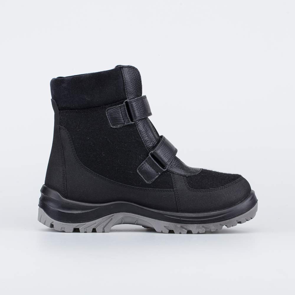 Мужские валенки черного цвета выполнены в стиле войлочных ботинок.