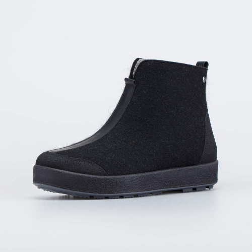 Войлок плотный, с водоотталкивающими свойствами. Он надежно сохраняет тепло, дышит и создаёт приятный микроклимат вокруг стопы. Носок и пятка защищены кожаными накладками с ПУ-покрытием. Классический черный цвет делает модель подходящей для разных случаев и стилей.