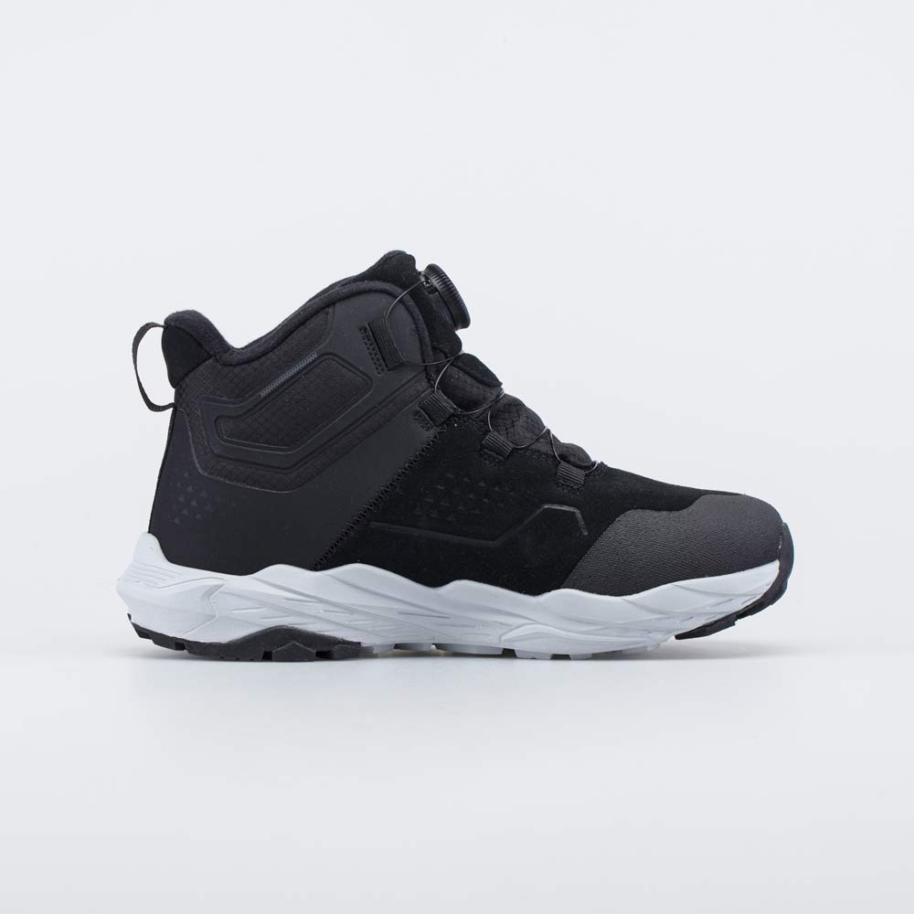 Верх этих черных ботинок изготовлен из комбинации натуральной кожи-велюра, а также деталей из искусственной кожи и ветронепродуваемого текстиля. Носочная часть защищена ПУ-накладкой.