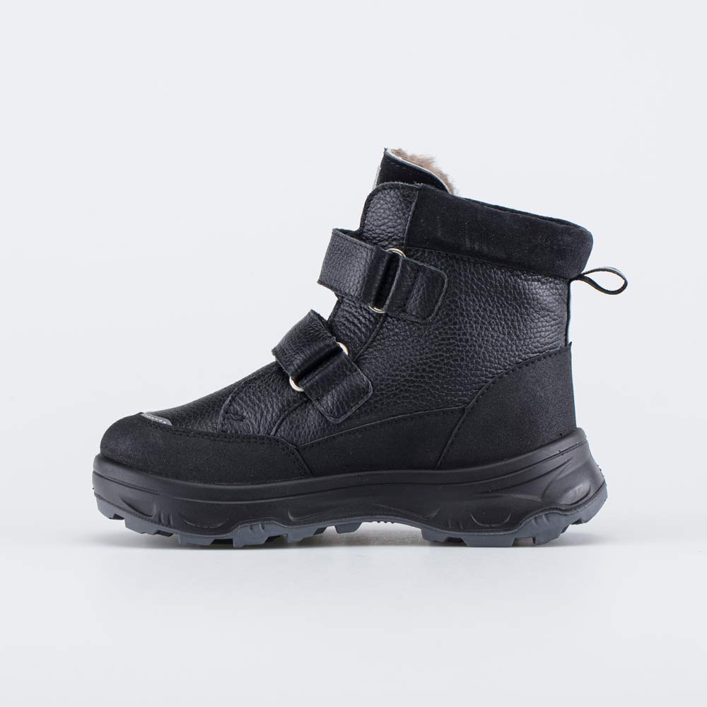 Детские зимние ботинки на овчине, декорированные нашивкой с логотипом Котофей, походят для мальчика.