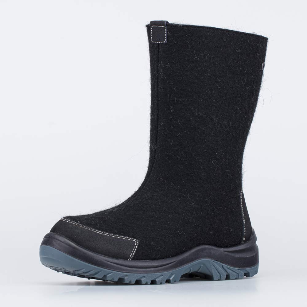 Плотный натуральный войлок из 100% овечьей шерсти обладает водоотталкивающими свойствами. Он надежно сохраняет тепло, дышит и создаёт приятный микроклимат вокруг стопы. Носочная и пяточная части защищены от влаги и реагентов кожаными накладками с ПУ-напылением.