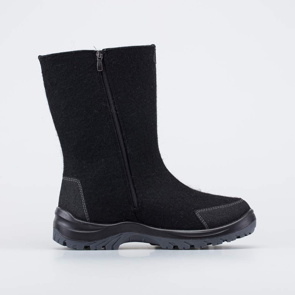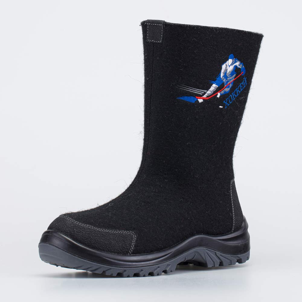 Носочная и пяточная части защищены кожаными накладками с полиуретановым покрытием. Они предохраняют войлок от влаги и реагентов.