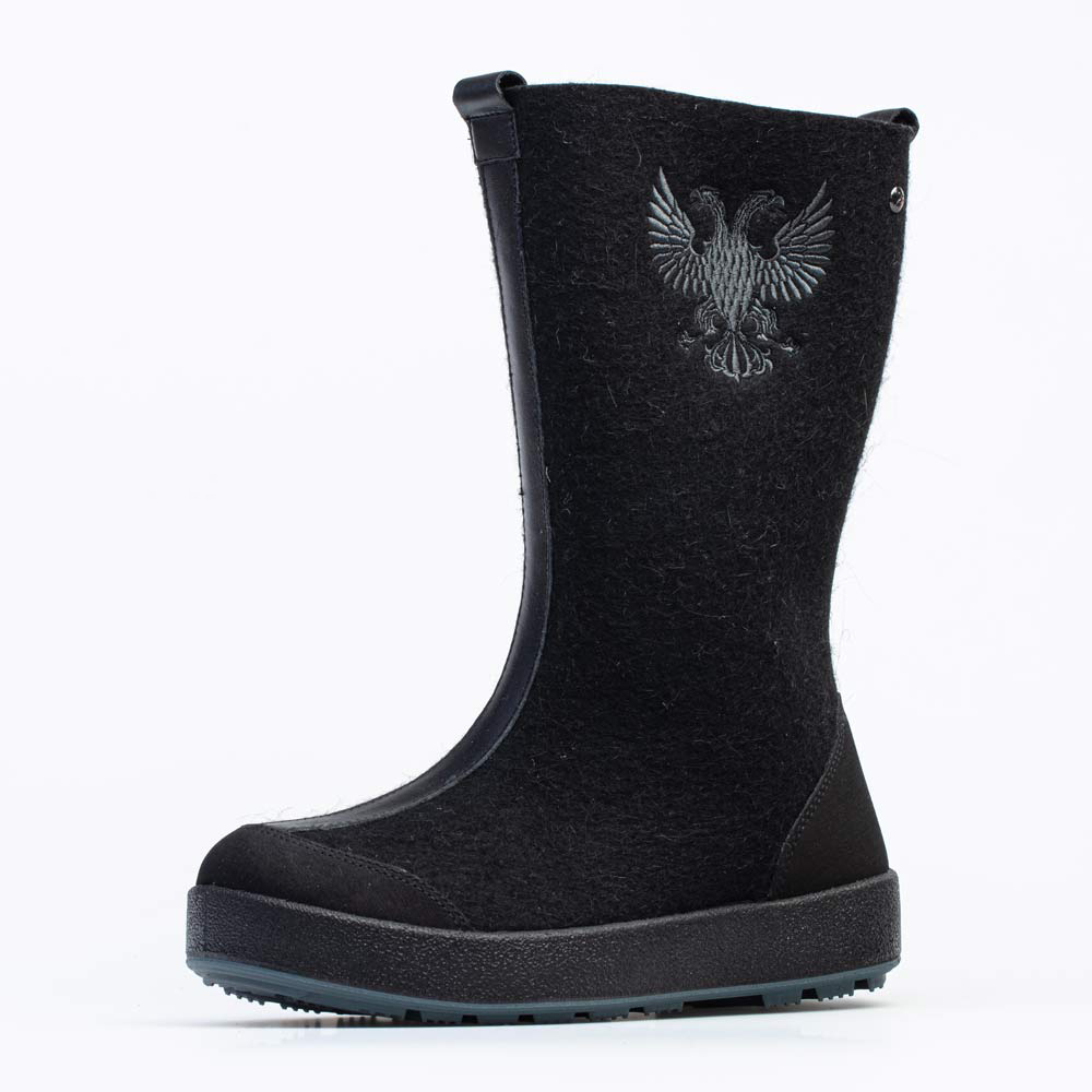 Классические мужские валенки украшены брутальной вышивкой в виде двуглавого орла.