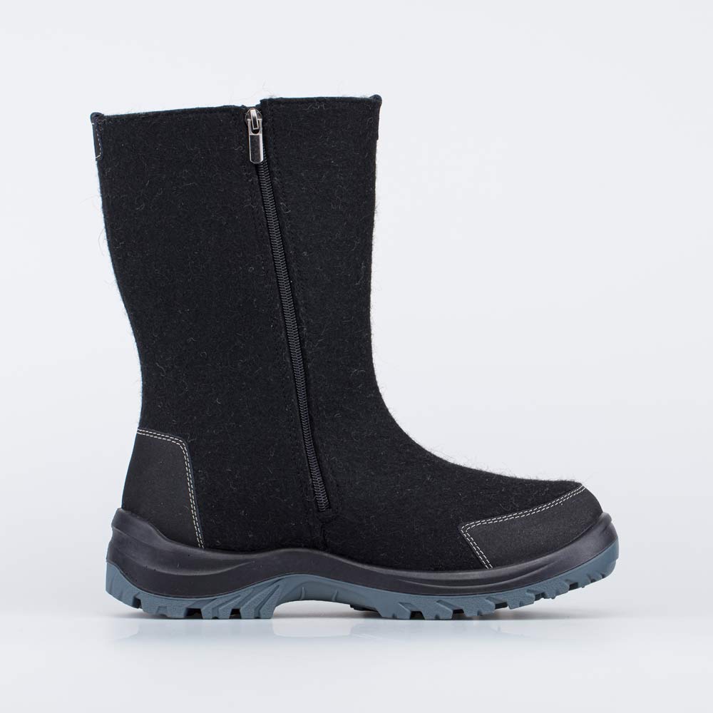 Мужские валенки с подкладкой выполнены из черного войлока.