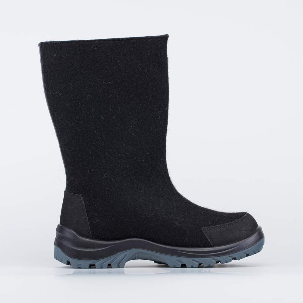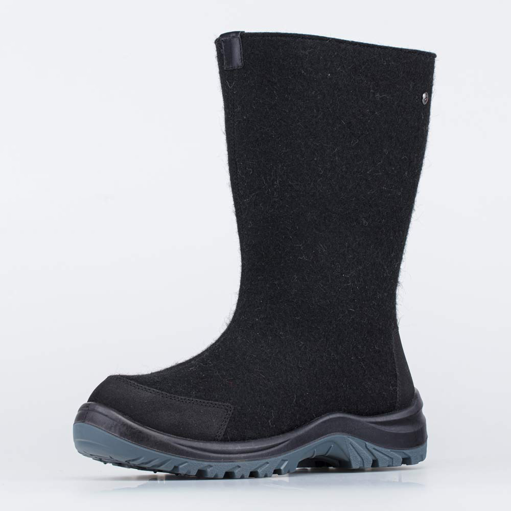 Плотный натуральный войлок из 100% овечьей шерсти и обладает водоотталкивающими свойствами. Он надежно сохраняет тепло, дышит и создаёт приятный микроклимат вокруг стопы. Носок и пятка защищены от влаги и реагентов кожаными накладками с ПУ-напылением.