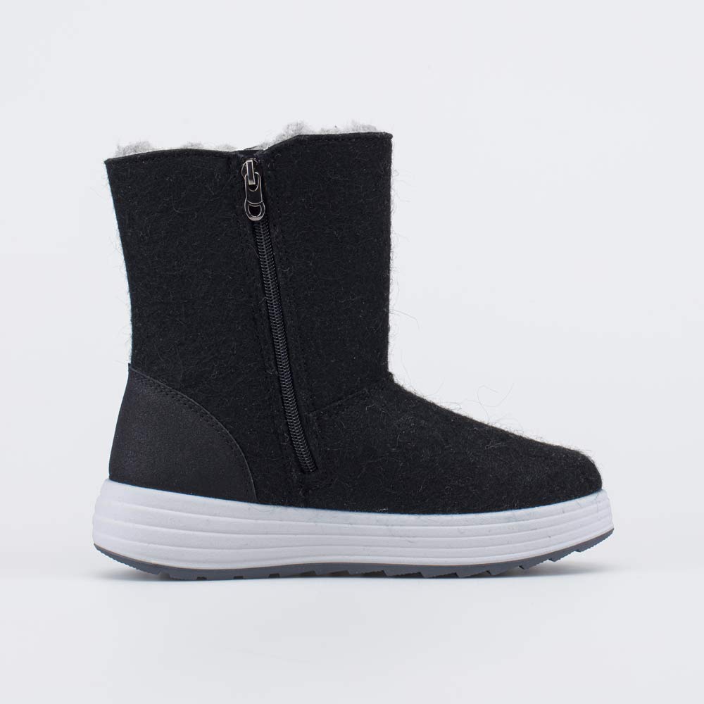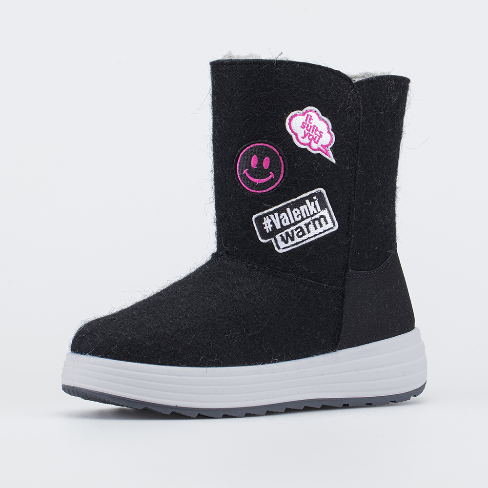 Плотный натуральный войлок обладает водоотталкивающими свойствами. Он надежно сохраняет тепло, дышит и создаёт приятный микроклимат вокруг стопы. Пяточная часть защищена кожаной накладкой с ПУ-покрытием, которая предохраняет от влаги и реагентов. Яркие нашивки подчеркивают современный стиль модели.