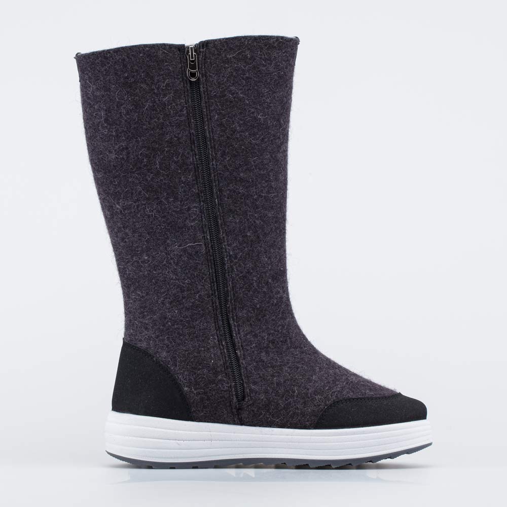 Материал верха натуральный войлок - плотный, дышащий. Он создаёт благоприятный климат вокруг стопы. Носок и пятка защищены от реагентов дополнительными накладками из кожи с полиуретановым покрытием.