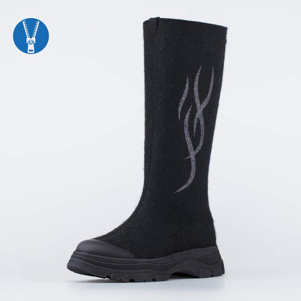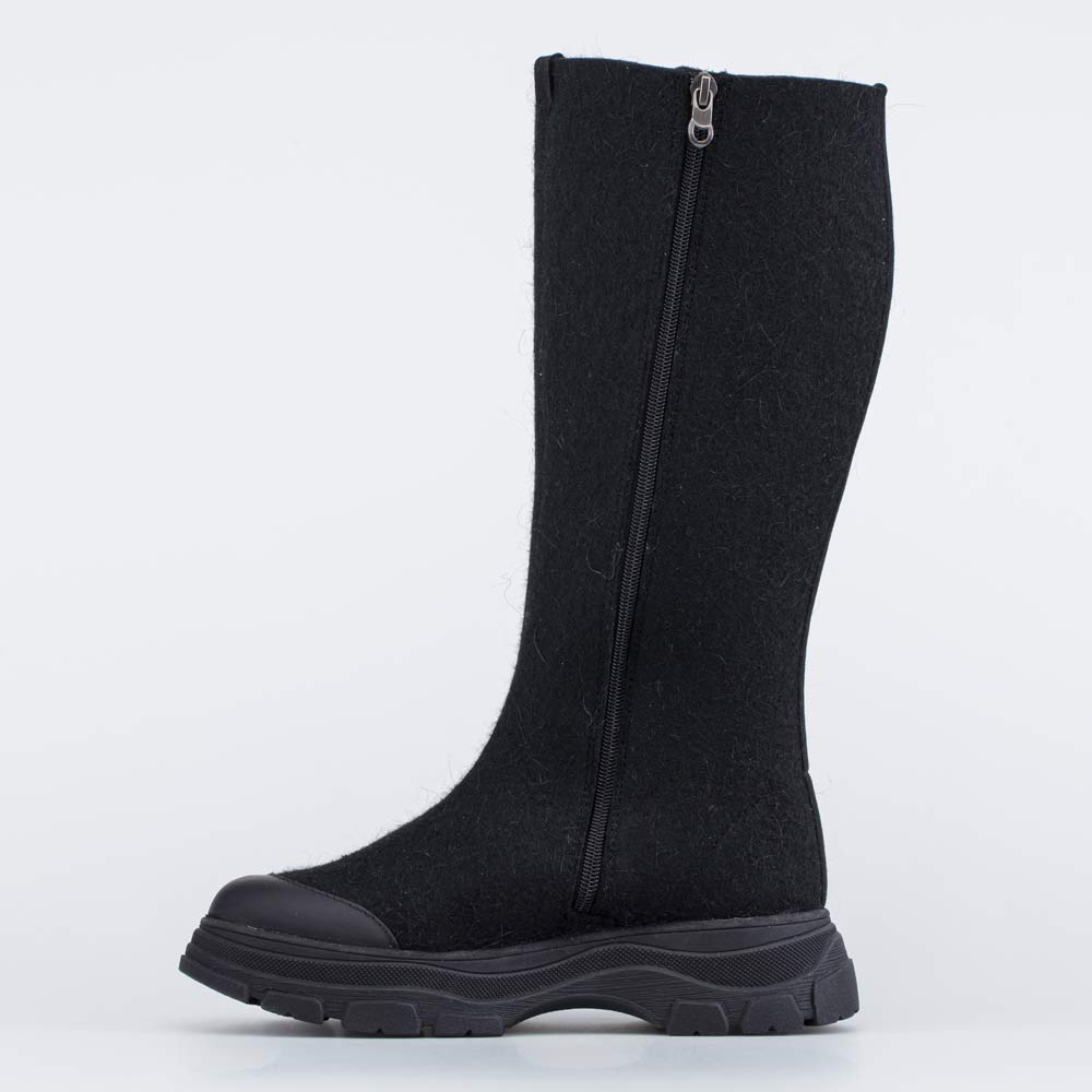 Женские валенки выполнены в черном цвете.
