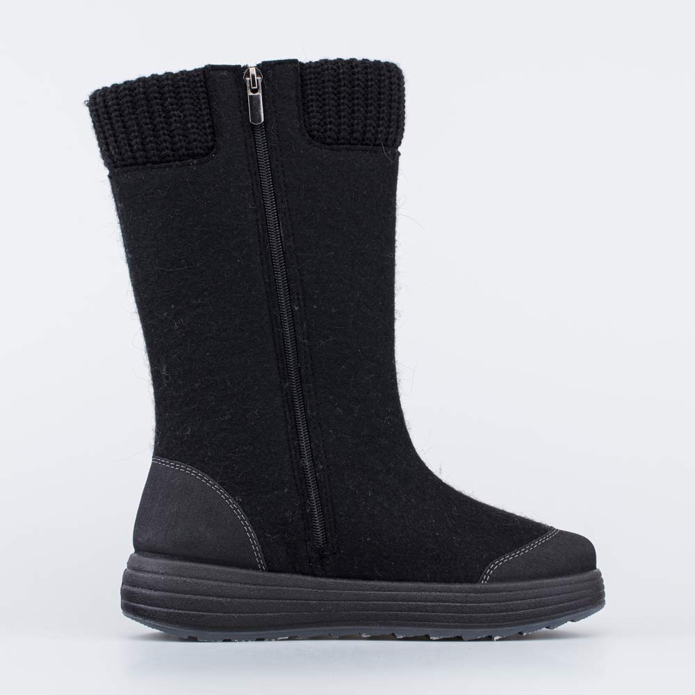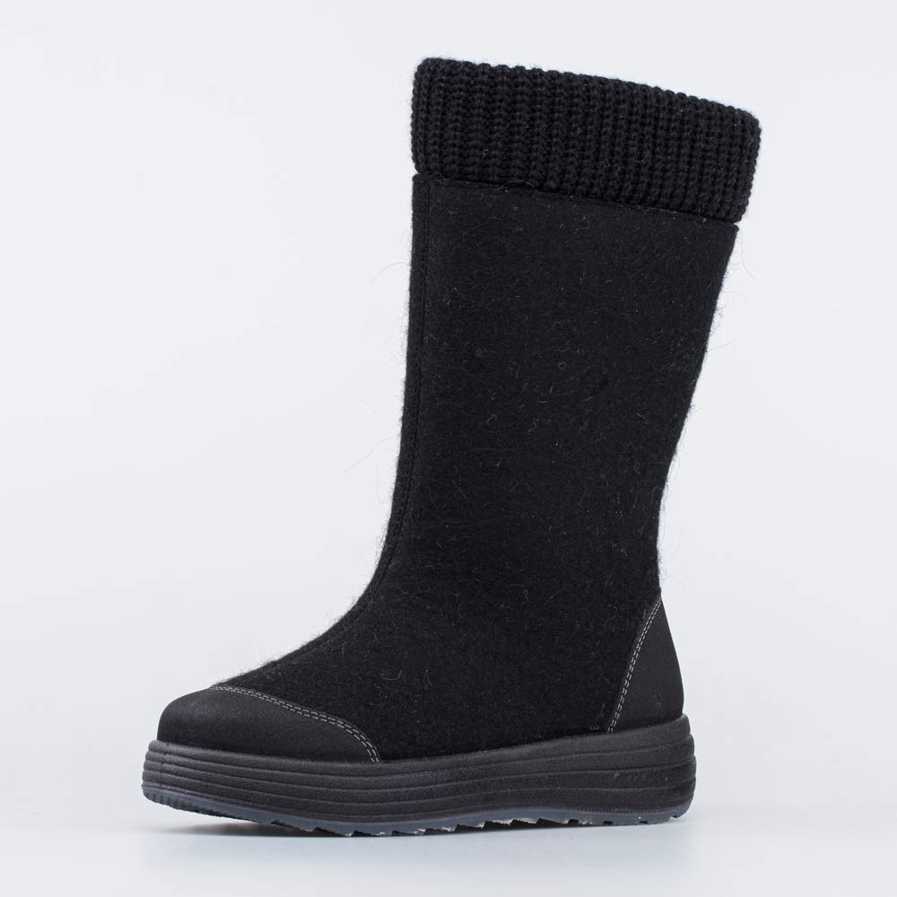 Войлок плотный, с водоотталкивающими свойствами. Он надежно сохраняет тепло, дышит и создаёт приятный микроклимат вокруг стопы. Носок и пятка защищены от влаги и реагентов кожаными накладками с ПУ-покрытием. Мягкий вязаный манжет является не только декоративным элементом, но и защищает от попадания снега внутрь.