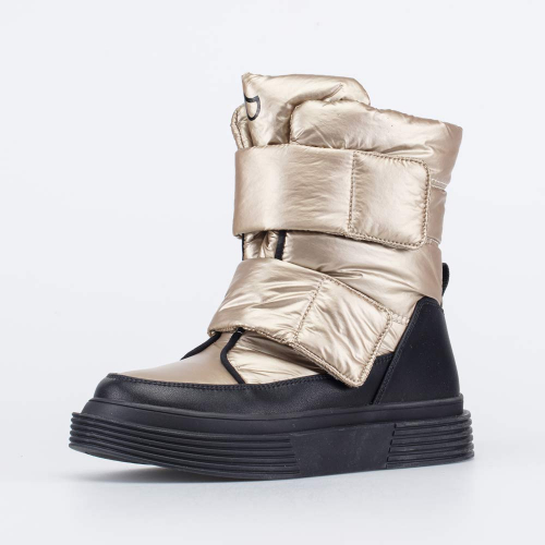 Сапожки-дутики для детей ясельного возраста изготовлены из комбинации натуральной кожи и текстильного материала.