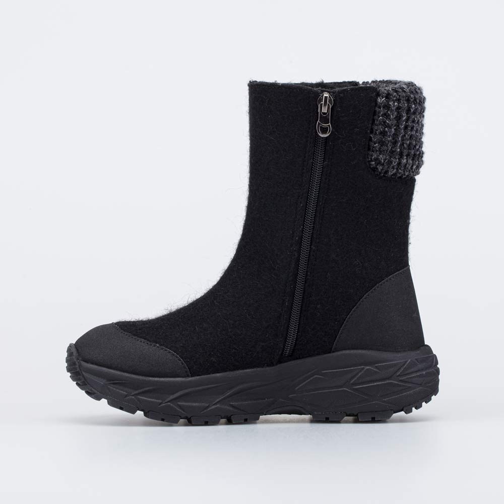 Войлок плотный, с водоотталкивающими свойствами. Он надежно сохраняет тепло, дышит и создаёт приятный микроклимат вокруг стопы. Носок и пятка защищены от влаги и реагентов кожаными накладками с ПУ-напылением. Вязаный манжет обеспечивает комфорт при ходьбе.
