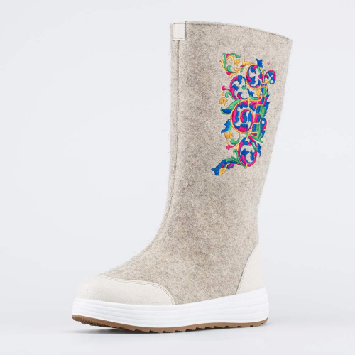 Войлок плотный, с водоотталкивающими свойствами. Он сохраняет тепло, дышит и создаёт приятный микроклимат вокруг стопы на улице и в помещении.