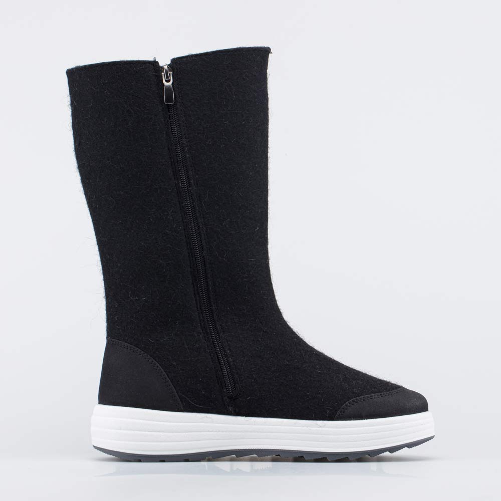 Плотный войлок обладает водоотталкивающими свойствами, дышит и создаёт приятный микроклимат вокруг стопы. Носок и пятку от влаги и реагентов защищают кожаные накладки с ПУ-покрытием.