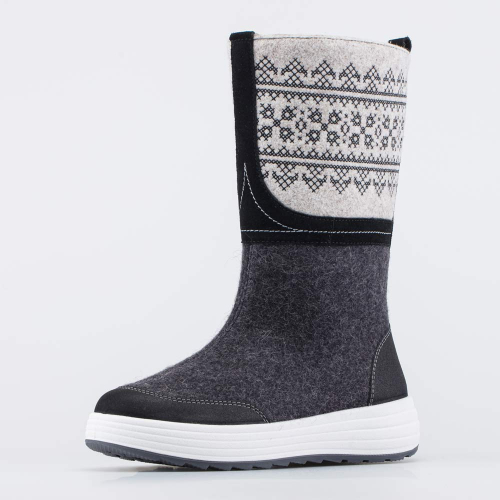 Валенки выполнены из плотного натурального войлока (100% овечья шерсть), который обладает водоотталкивающими свойствами, дышит и создаёт приятный микроклимат вокруг стопы. Пяточная часть защищена от влаги и реагентов кожаной накладкой с ПУ-напылением.