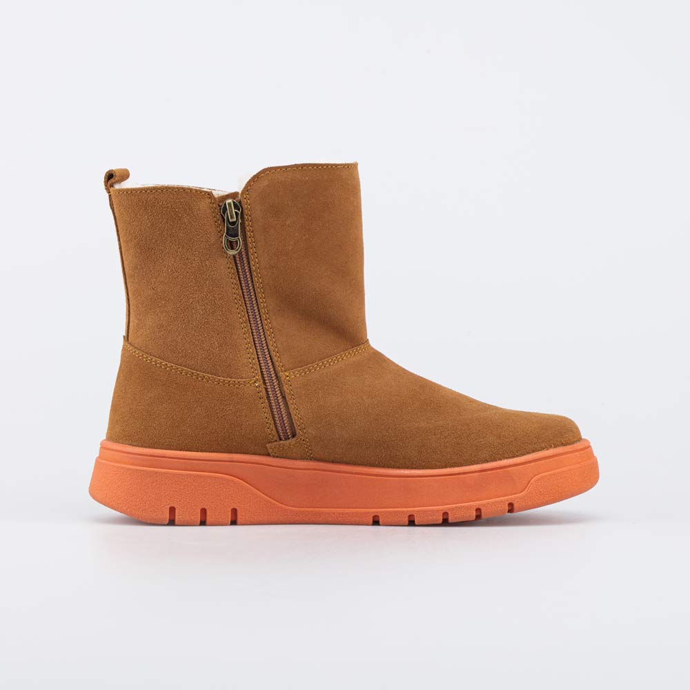 Удобные зимние сапожки для девочки выполнены в трендовом кирпичном цвете.