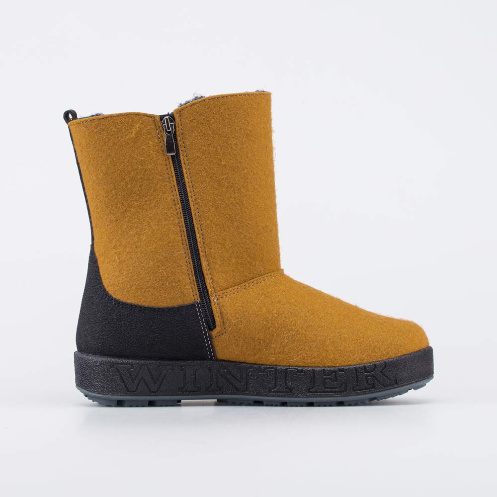 Верх и стелька из натурального войлока (100% овечья шерсть), подкладка из шерстяного меха (натуральные шерстяные волокна вплетены в текстильную основу). Обеспечивают сухое тепло в сильные морозы до - 30, помогают сохранить комфорт при сырой и влажной погоде до +5.