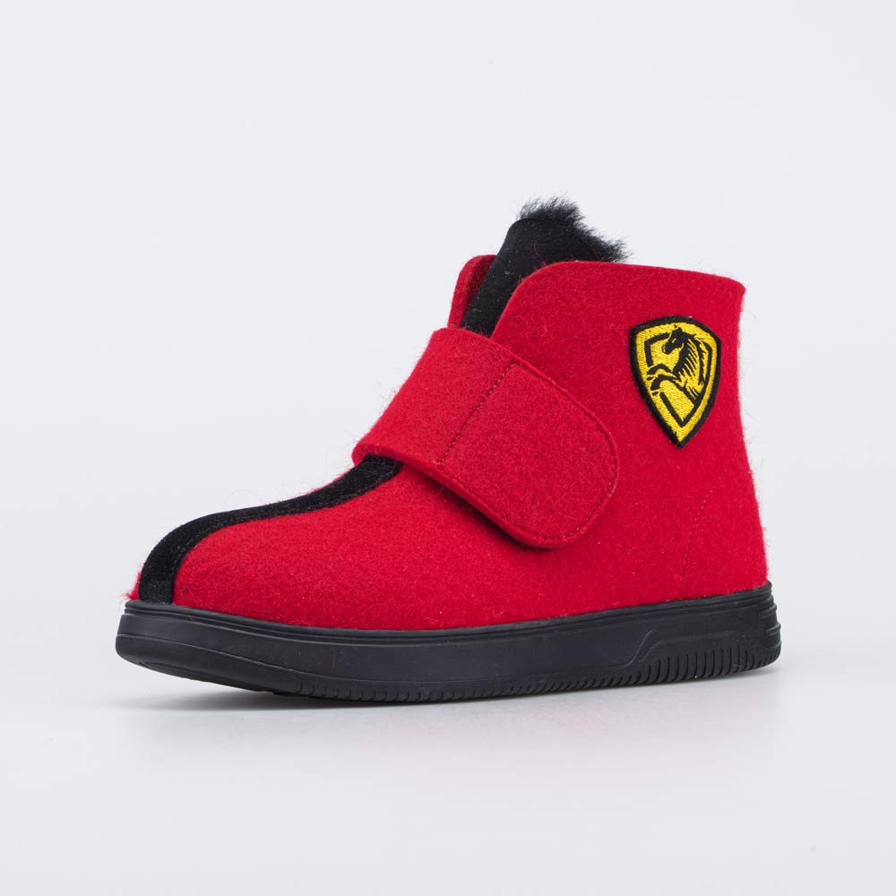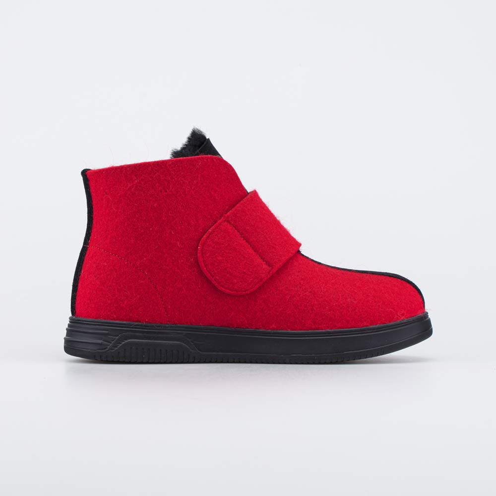 Красные валенки, выполненные в виде войлочных ботинок, обеспечивают тепло в мороз и сохраняют комфорт при влажной погоде до +5 градусов. Яркий цвет делает модель эффектным дополнением современного мужского образа.