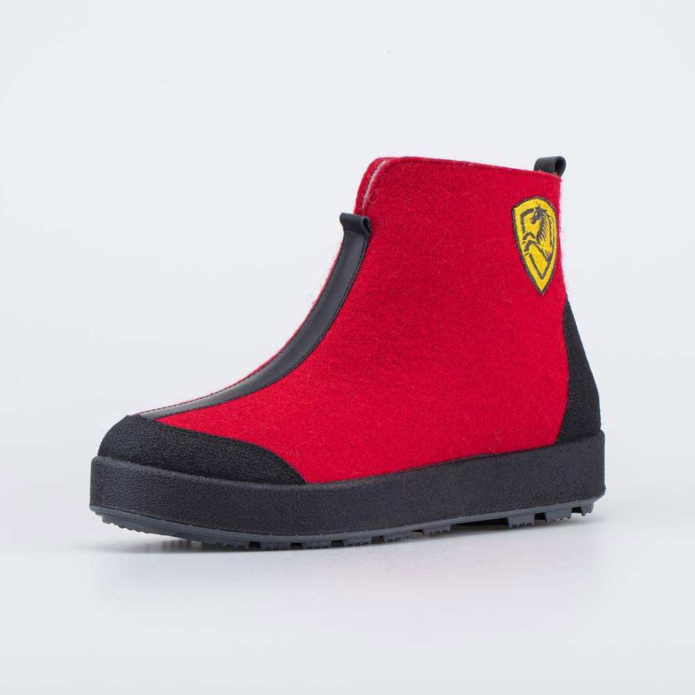 Красные войлочные полуботинки для мужчин укороченного фасона обеспечивают сухое тепло в сильные морозы до - 30, помогают сохранить комфорт при сырой и влажной погоде до +5.