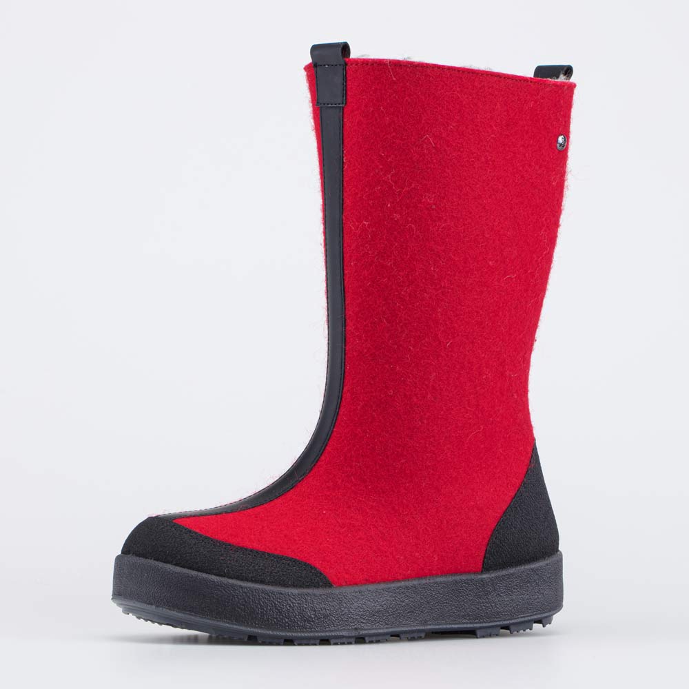 Плотный натуральный войлок из 100% овечьей шерсти и обладает водоотталкивающими свойствами. Он надежно сохраняет тепло, дышит и создаёт приятный микроклимат вокруг стопы. Носок и пятка защищены от влаги и реагентов кожаными накладками с ПУ-напылением.