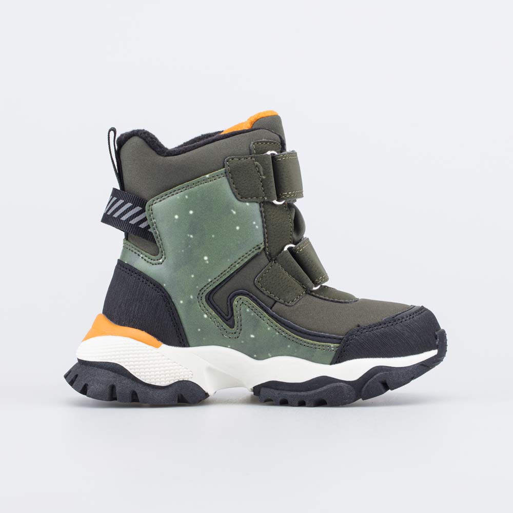 Мембранные ботинки оливкового цвета для мальчика ясельного возраста выполнены с применением технологии SoftShell.