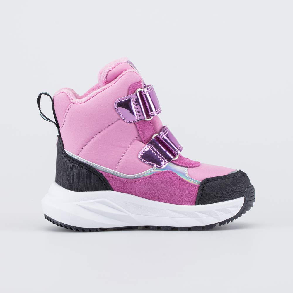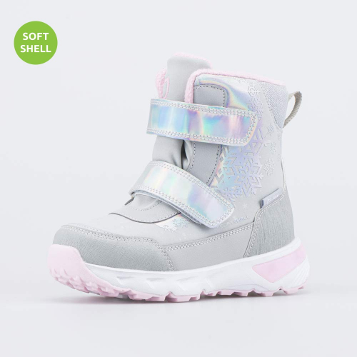 Эти детские ботинки имеют верх из комбинации ветронепродуваемого текстиля Softshell, натуральной и искусственной кожи. Носочная и пяточная части защищены антивандальными накладками.
