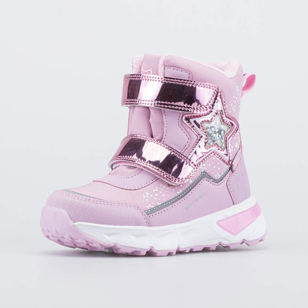 Мембранные ботинки розового цвета для девочки-дошкольницы выполнены с применением технологии SoftShell.