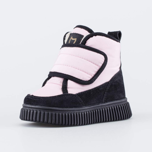 Зимние сапожки-дутики выполнены в тренде Фентези-сообщество (теплый розовый оттенок, объемная футуристическая форма). Они предназначены для девочки дошкольного возраста.