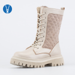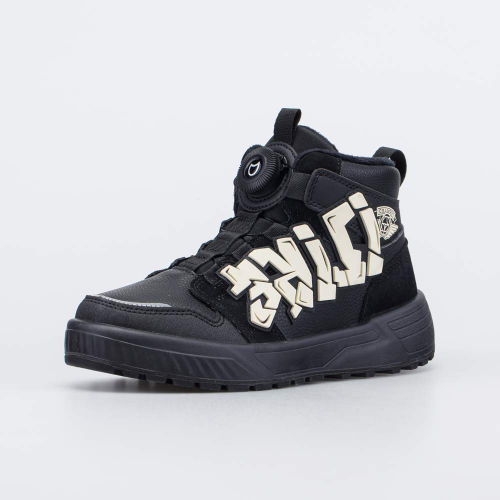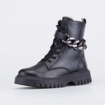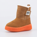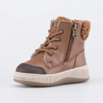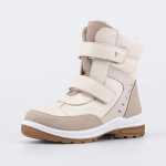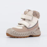 Верх этих детских ботинок выполнен из натуральной кожи и украшен кудрявым мехом барашек. Носочная часть усилена дополнительной кожаной накладкой с полиуретановым покрытием.