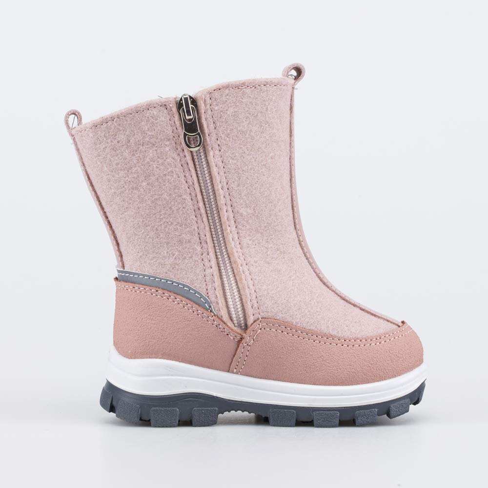 Розовые валенки на подошве, выполненные из натурального войлока, подходят для девочки.