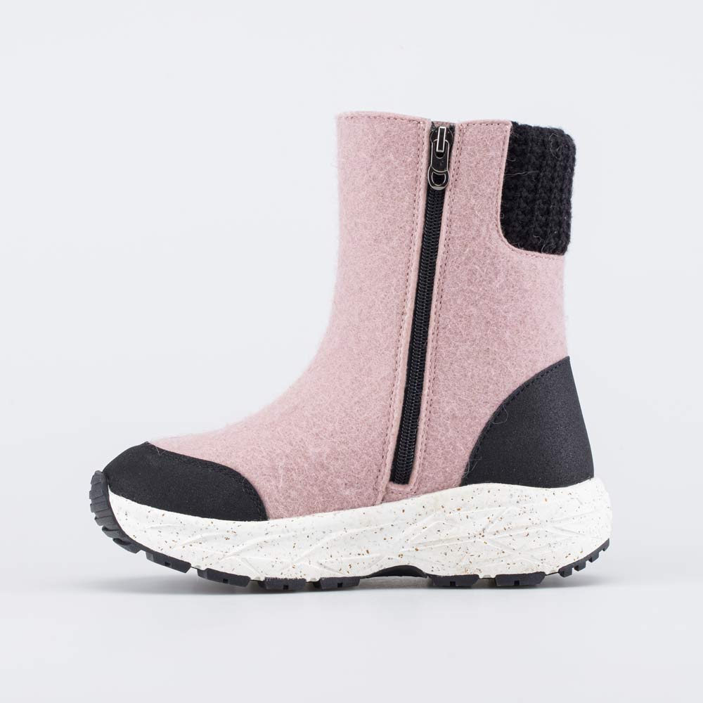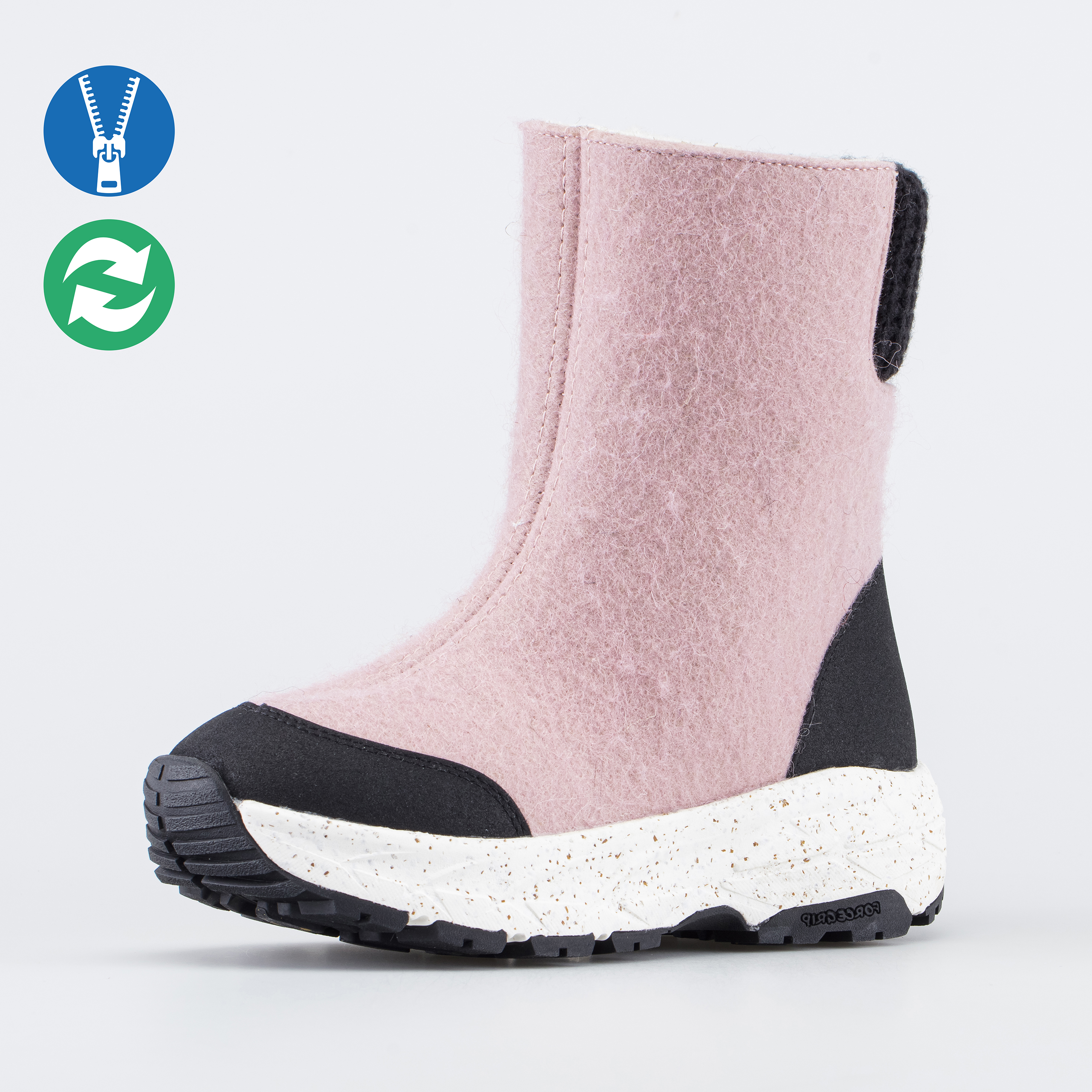 Валенки, выполненные в стиле войлочных полусапожек, отличаются экологичной подошвой с добавлением переработанных материалов.