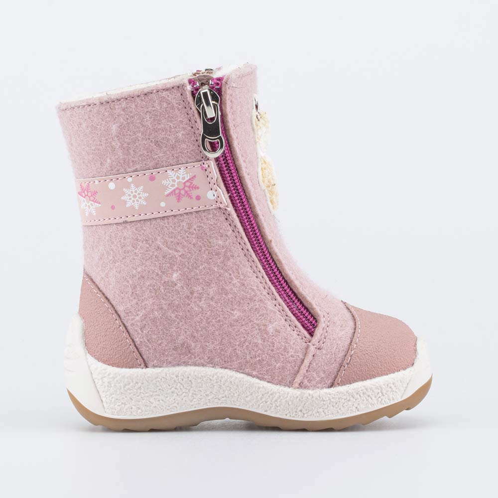 Войлок плотный, с водоотталкивающими свойствами. Он надежно сохраняет тепло, дышит и создаёт приятный микроклимат вокруг стопы. Носок и пятка защищены кожаными накладками с ПУ-покрытием, которые предохраняют от влаги и реагентов.