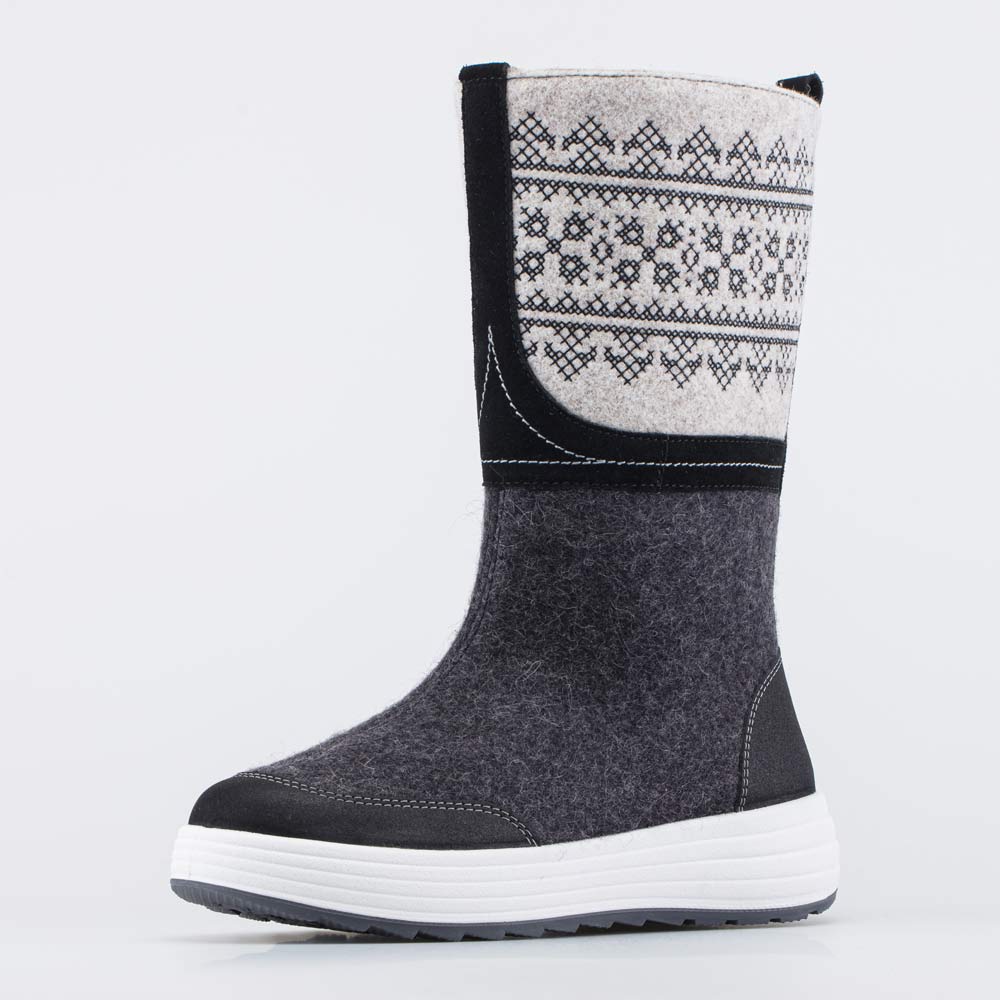 Плотный войлок надежно сохраняет тепло, обладает влагоотталкивающими свойствами, дышит и создаёт приятный микроклимат вокруг стопы. Носок и пятка защищены от влаги и реагентов кожаными накладками с ПУ-покрытием, а вышивка на голенище наделяет модель особым колоритом.