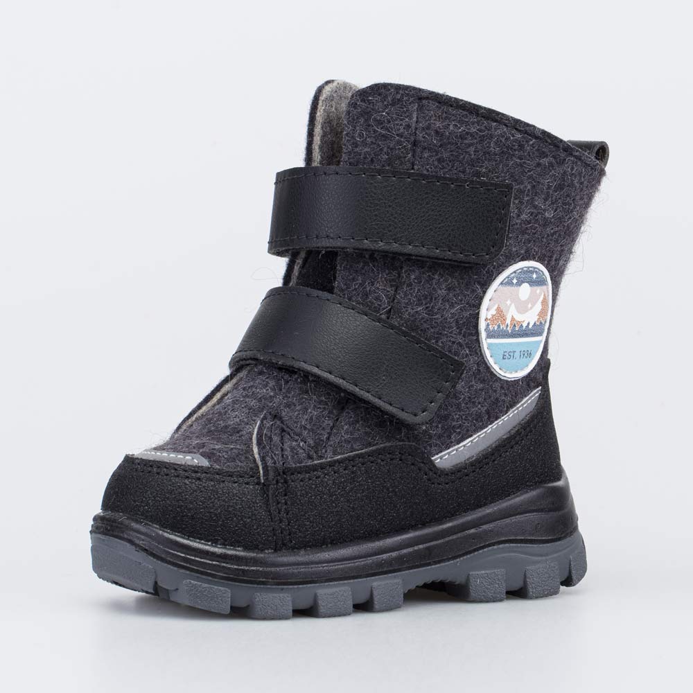 Детские валенки на подошве выполнены из натурального войлока и украшены нашивкой с надписью 1936 – год основания фабрики Егорьевск-обувь.