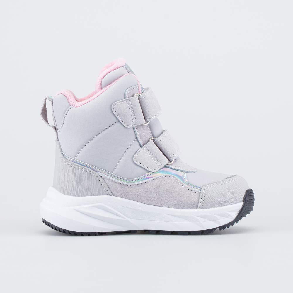 Эти детские ботинки имеют верх из комбинации ветронепродуваемого текстиля Softshell, натуральной и искусственной кожи. Носочная и пяточная части защищены антивандальными накладками.