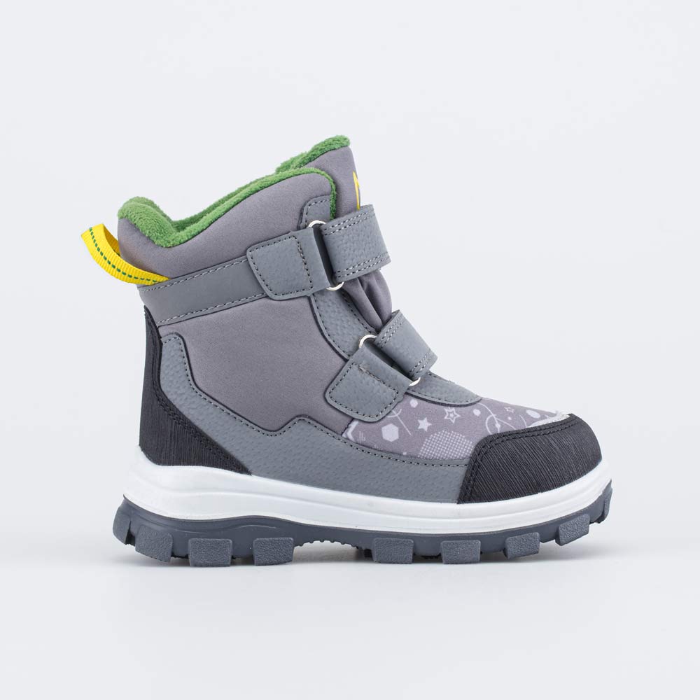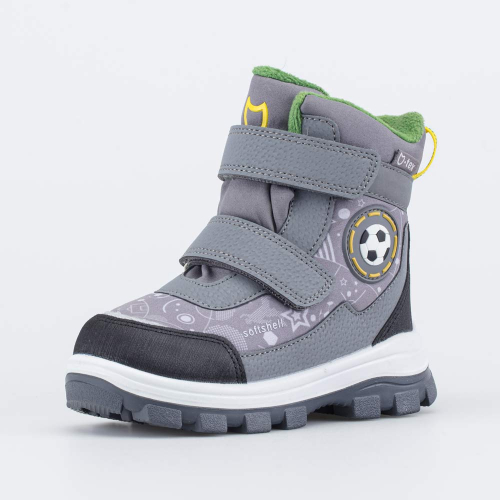 Мембранные ботинки серого цвета для мальчика-дошкольника выполнены с применением технологии SoftShell.